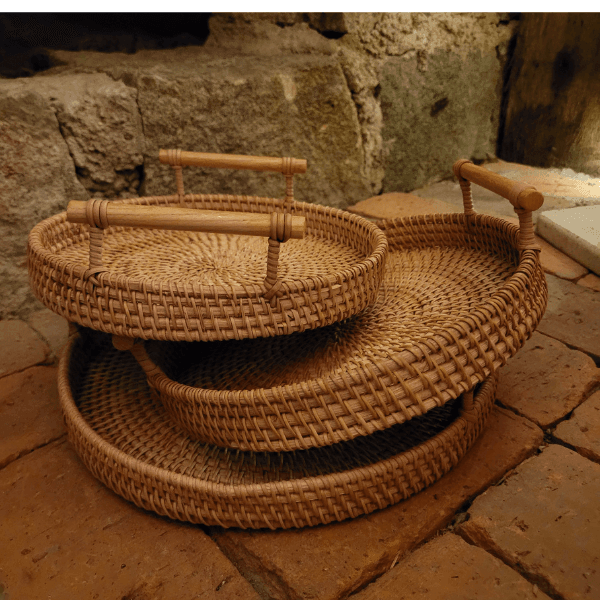 Além de ser vendida individualmente, a Bandeja Artesanal Rattan Dhaka também está disponível em um conjunto com as três peças, permitindo que você crie uma composição harmoniosa em diferentes ambientes de sua casa, economizando.