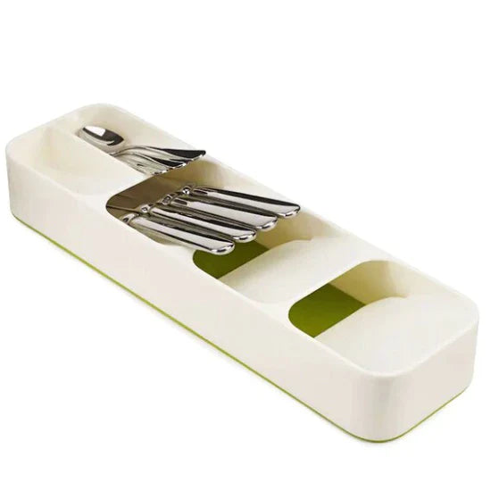 Com ele, é possível separar colheres, garfos e facas em compartimentos adequados e de fácil acesso.