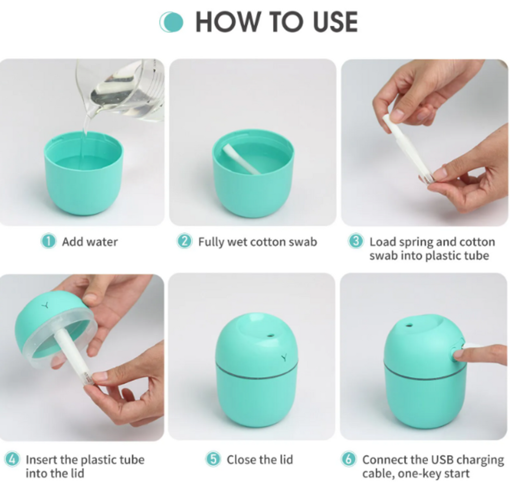Desligamento automático: Este umidificador será desligado automaticamente após o trabalho 6h. Não se preocupe em danificar o dispositivo em si ou causar perigo aos usuários. Mantê-lo saudável: Este umidificador pessoal não só pode ajudar a ajustar o ar seco na sala com ar condicionado, mas também hidrata sua pele, alivia a congestão nasal, purifica o ar, te mantendo saudável o tempo todo. Névoa fresca: Hidrata com segurança o ar para operação contínua para que você possa respirar facilmente e obter um sono mais repousante.